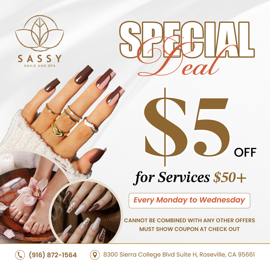 Welcome you to Sassy Nails, we are pleased to offer a full service Salon for our valued customers. We always assure that the salon is totally clean and the tools are sanitized clearly for each use. You are freely to enjoy the relax moments with luxurious and elegant space, escaping from all the life’s pressure and stress to make the most of wonderful time.